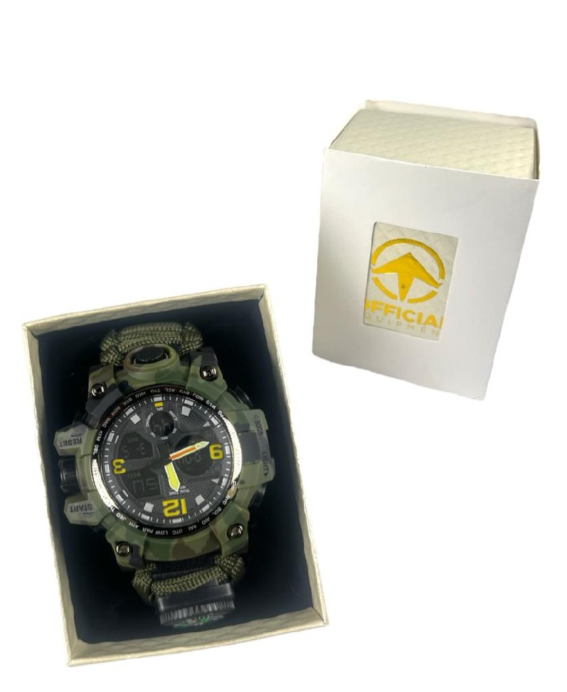 Fabricado con una mezcla estratégica de materiales de alta calidad, como polímeros de grado industrial o acero inoxidable, su cuerpo resiste los impactos, la abrasión y las inclemencias del tiempo. Su pantalla de cristal mineral o zafiro está diseñada para soportar rasguños y garantizar una lectura clara en todo momento. Además de la hora, este reloj incluye funciones vitales como una brújula para la navegación. Esta combinación de características asegura que tengas la información crítica para tomar decisiones informadas y mantener la seguridad en cualquier escenario.